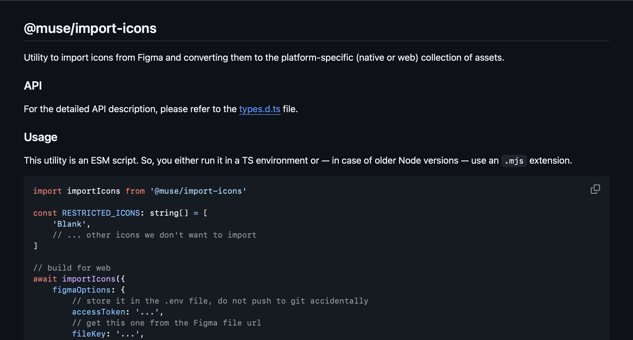 To transmit icon tokens from design to code we created icon import tool which helps to automize the process of exchange icons between design and code. To know more about how it works follow the link below.